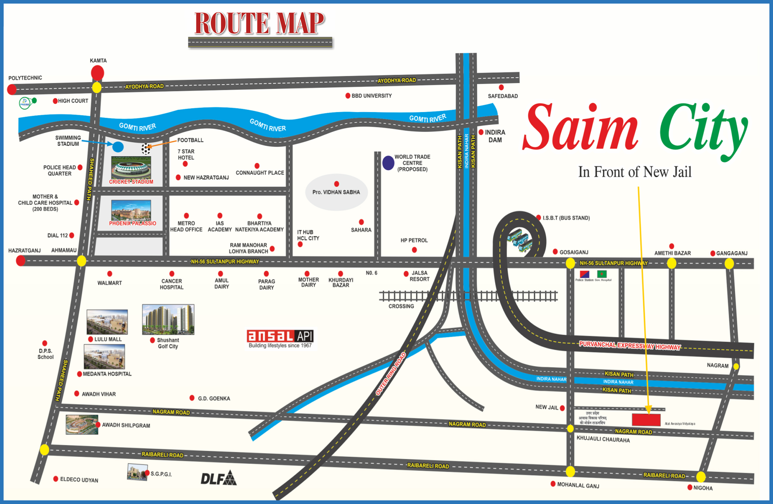 SAIM CITY Infront of New Jail, NH-56B-Lucknow is a premier real estate developmant project in Lucknow, which has launched an ambitious residential project.This project has been designd in such a way the each resident is guarented alife time of privacy and an unhurried pace of life with a completely safe, green and pollution free environment. In deed the property market in india real estate to habe not glimmered to the metro cities but to the capital of U.P has elevated to the coutry. Embraced of lush of greenery all around, signifies to experiance the simple joy of life. THE SAIM CITY is what modern living is all about.